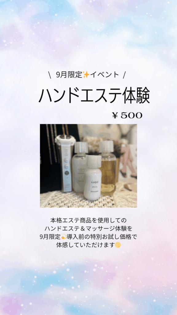 2025/09月限定♪ハンドエステ体験